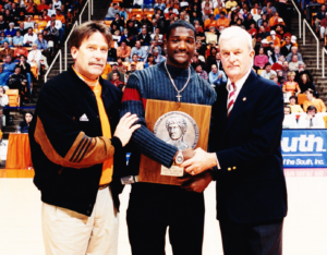 Beginning in 1965, he returned to Knoxville annually to present the Ed Murphey Award for the most outstanding men’s track & field performance. Notable winners through the years have included Richmond Flowers, Willie Gault, Todd Williams, Lawrence Johnson, Anthony Famigletti, Justin Gatlin, Aries Merritt and Justin Hunter. Murphey was a member of the 2005 class inducted into the Tennessee Sports Hall of Fame. He went in with five other Volunteers, including fellow track athletes Darwin Bonds and Flowers. Bill Justus, W.J. Siler and Haywood Harris also represented UT in the 2005 class.